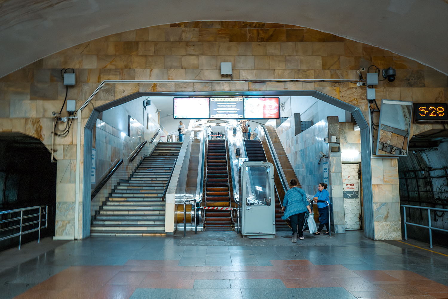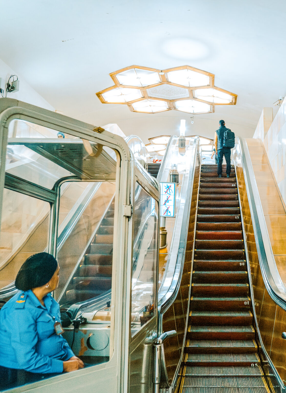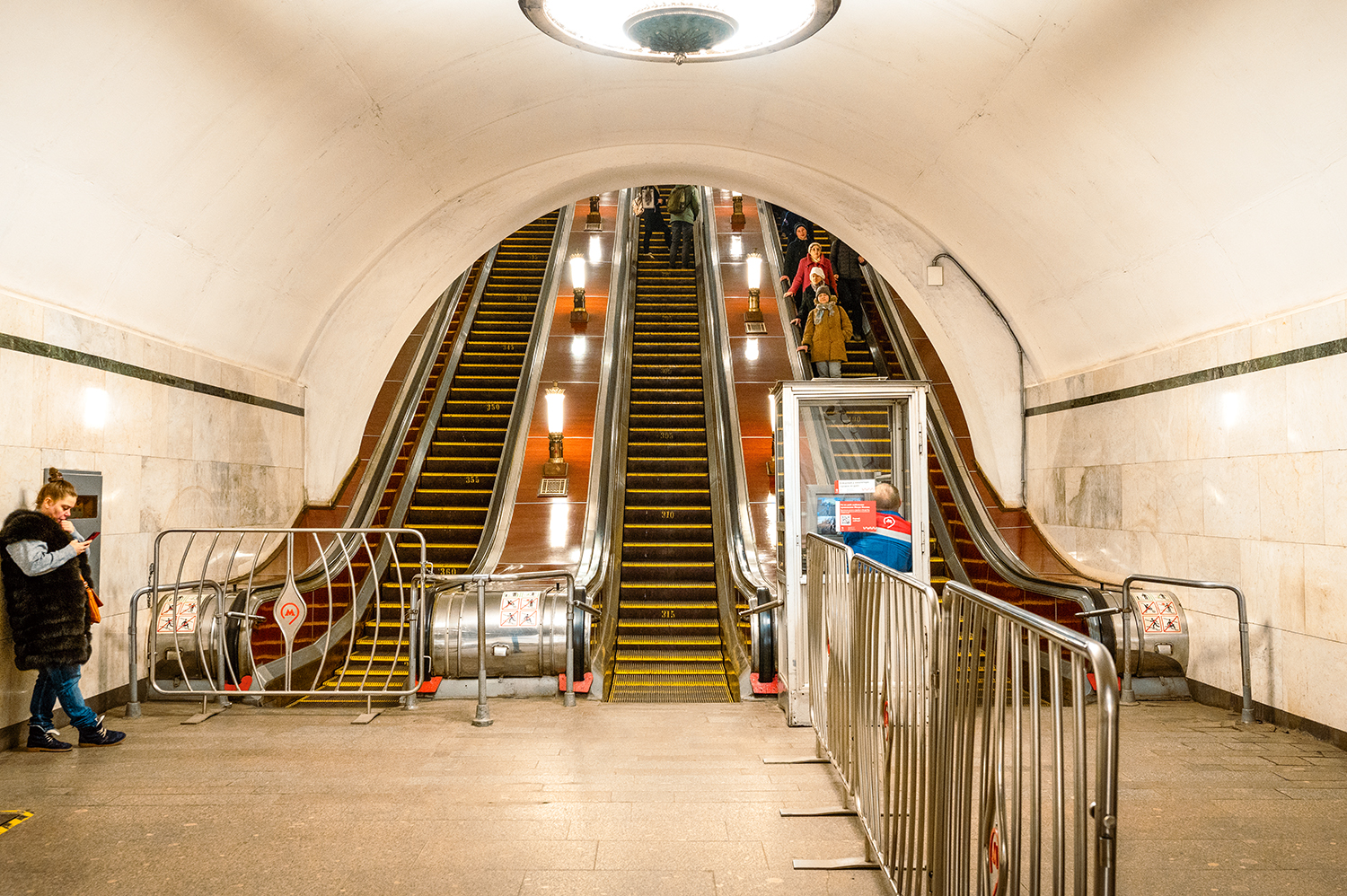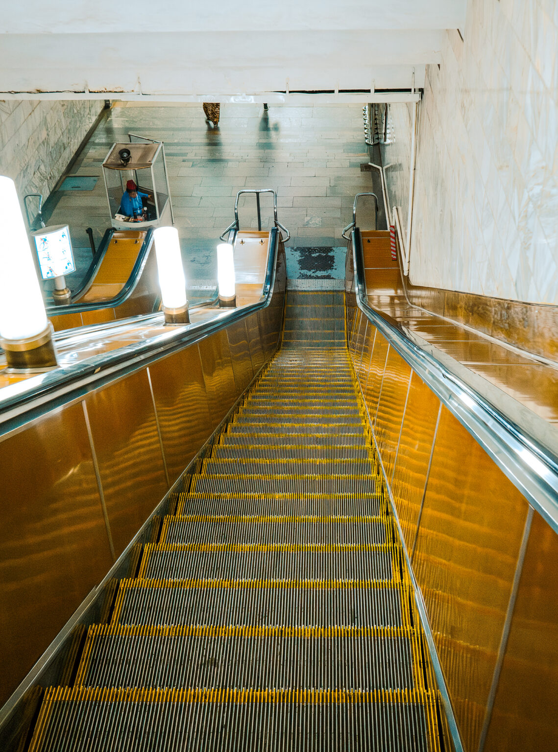 旧ソビエト圏の地下鉄は、だいたい長いエスカレーターが名物です。