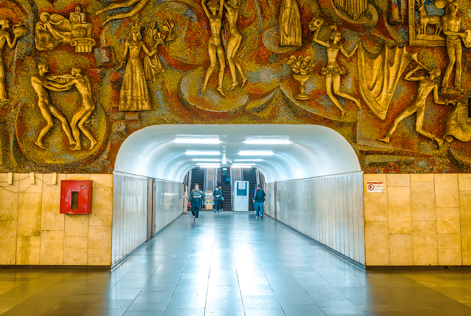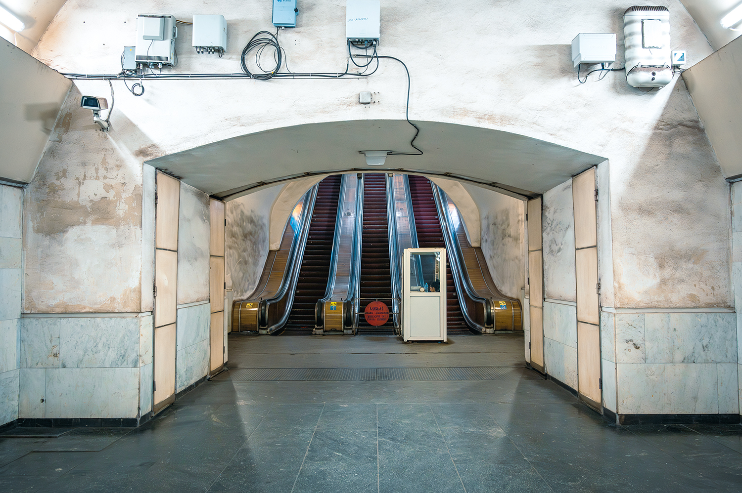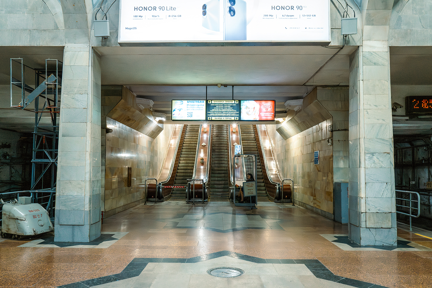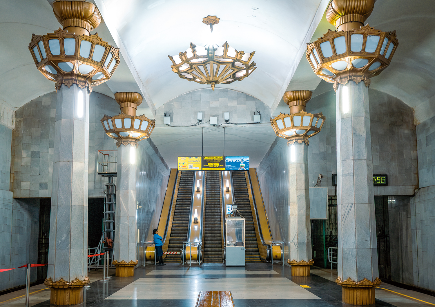旧ソビエト圏の地下鉄は、だいたい長いエスカレーターが名物です。