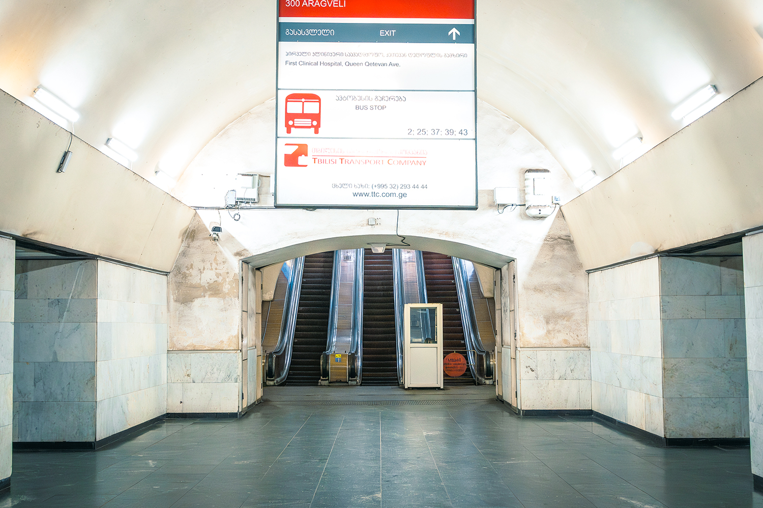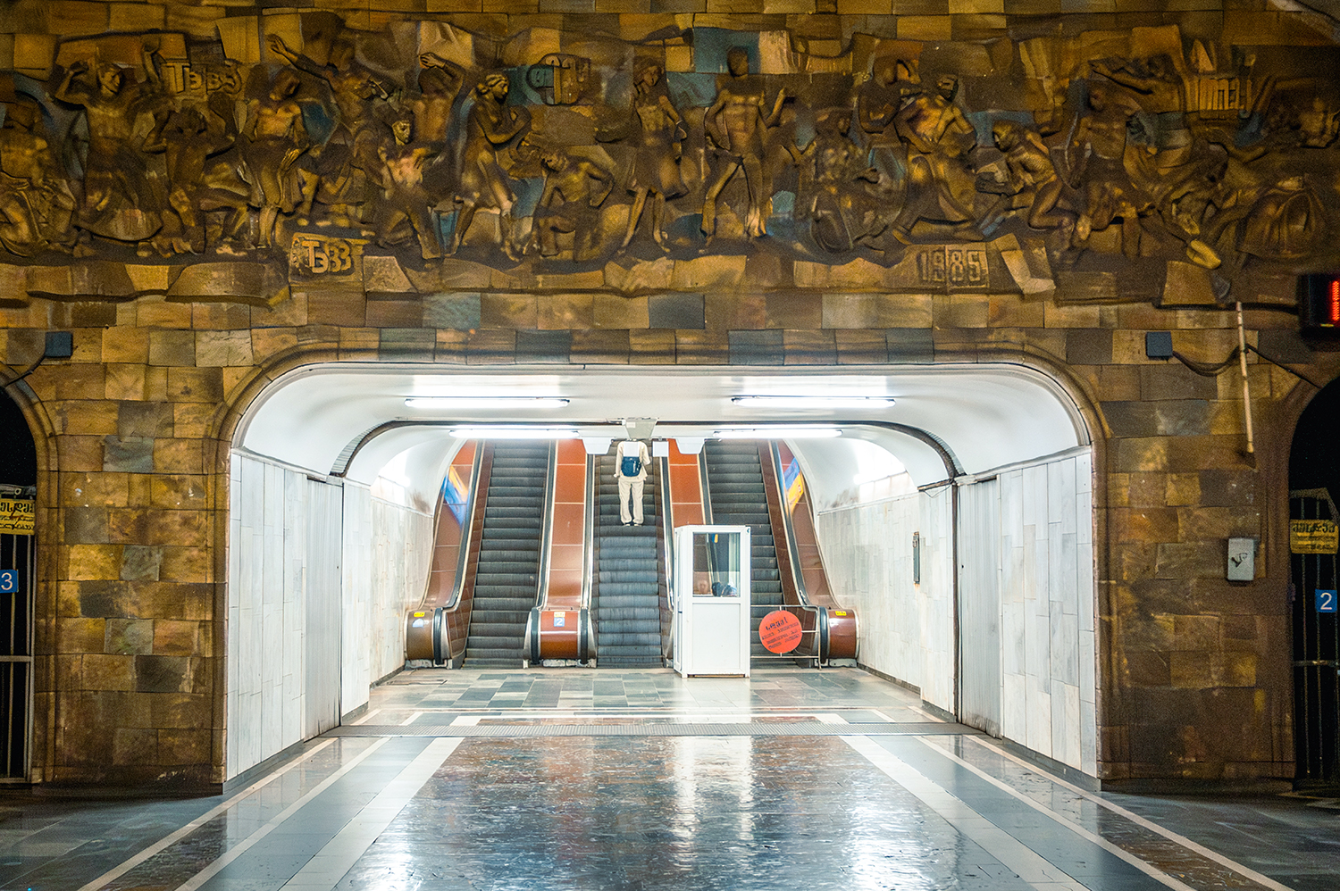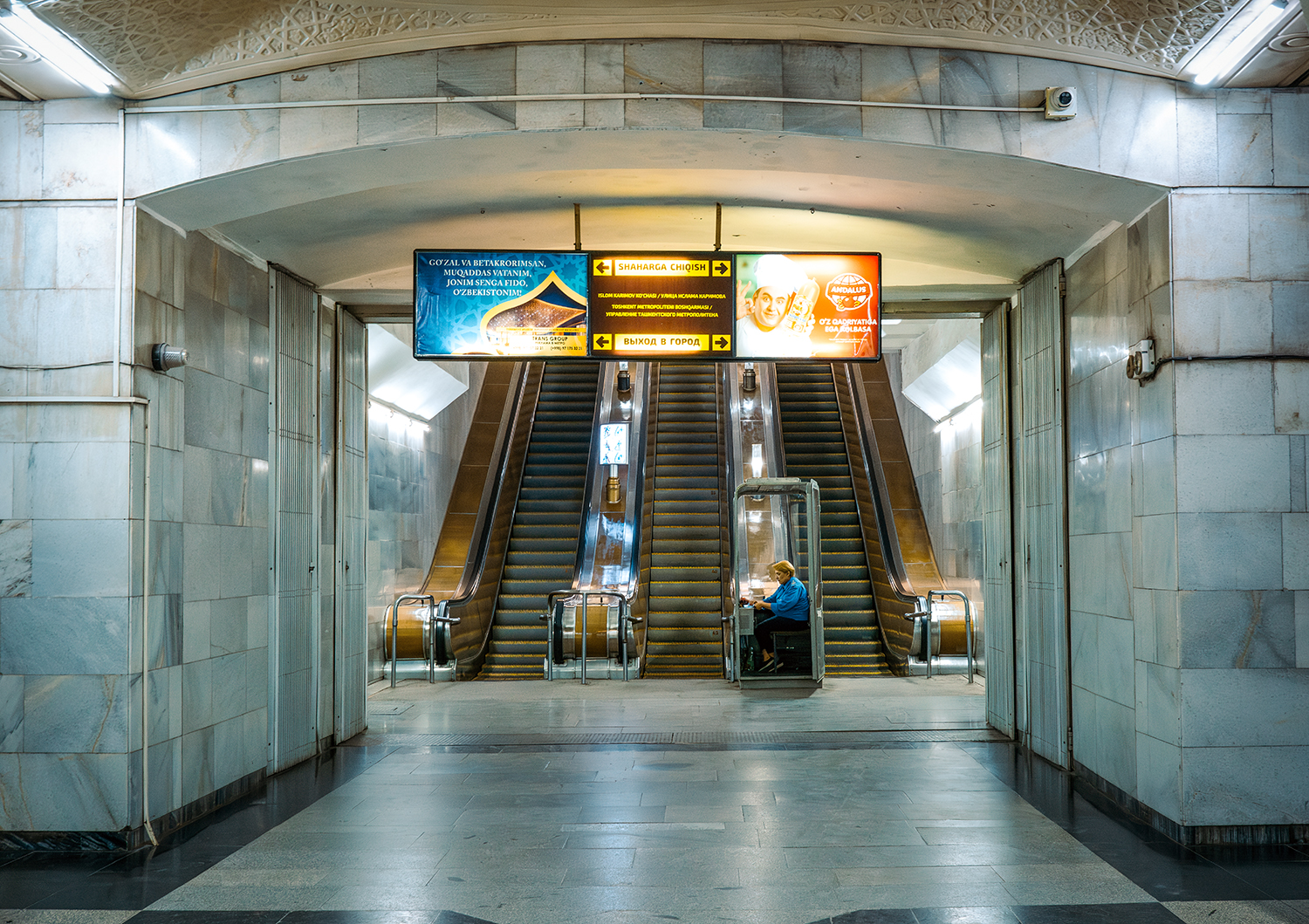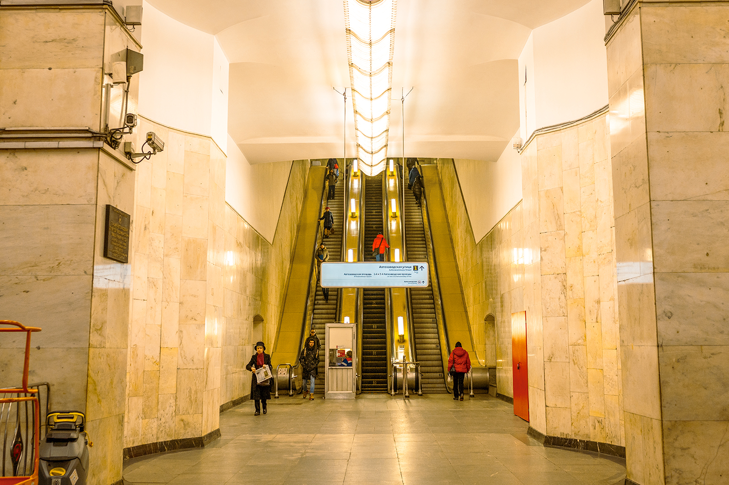 旧ソビエト圏の地下鉄は、だいたい長いエスカレーターが名物です。
