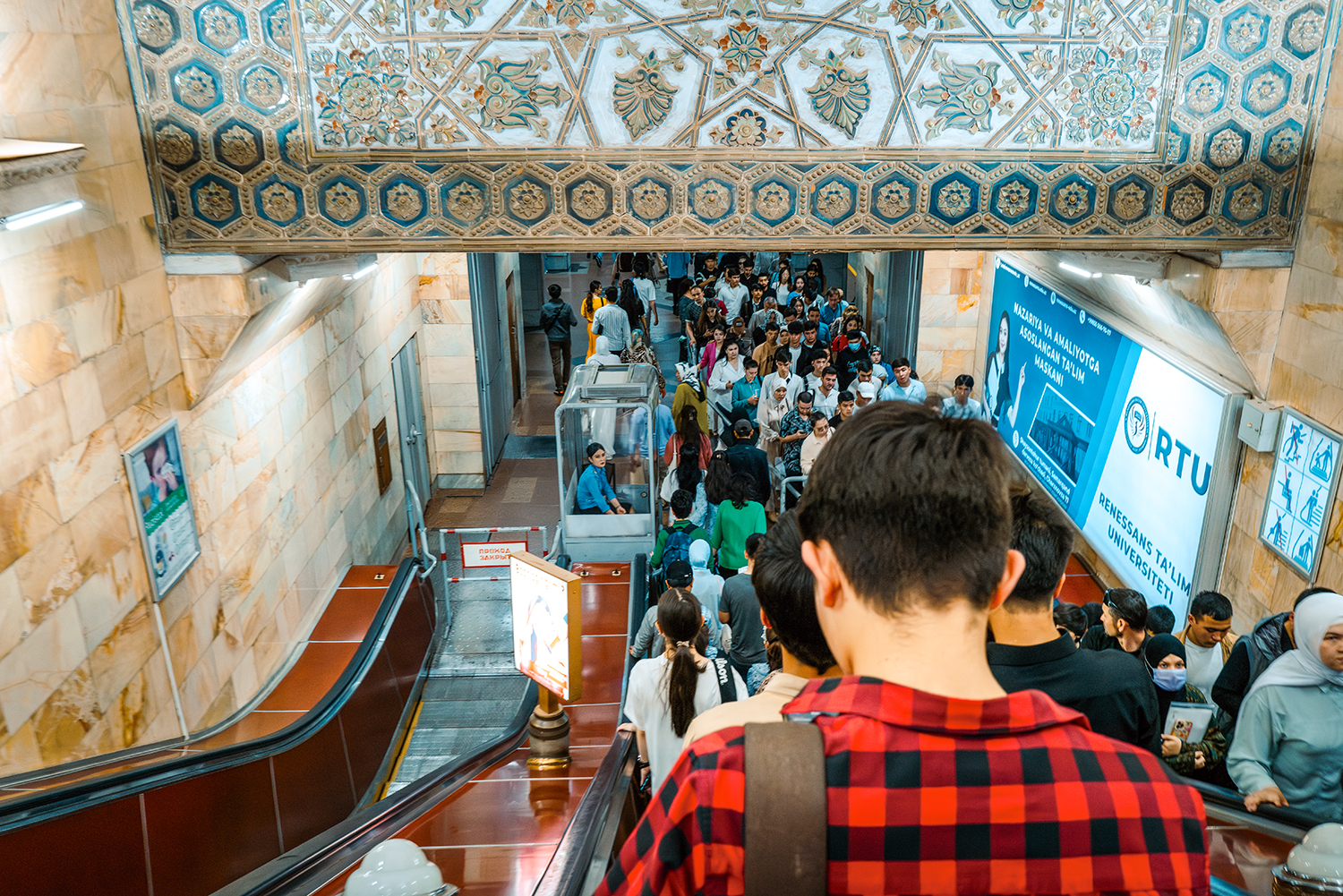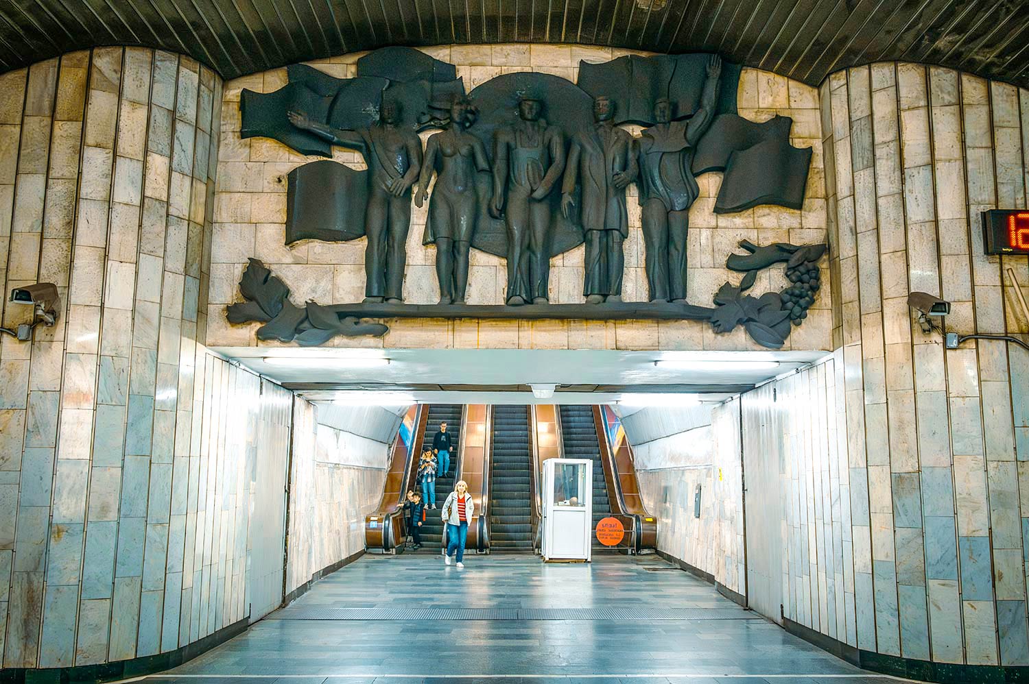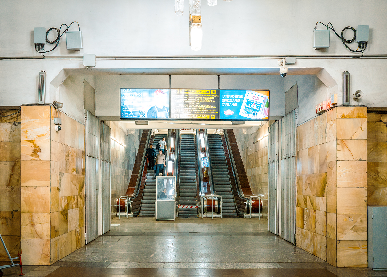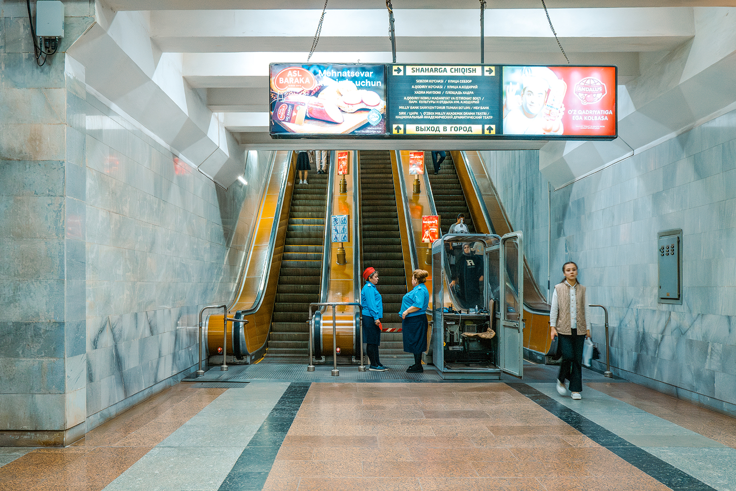 旧ソビエト圏の地下鉄は、だいたい長いエスカレーターが名物です。